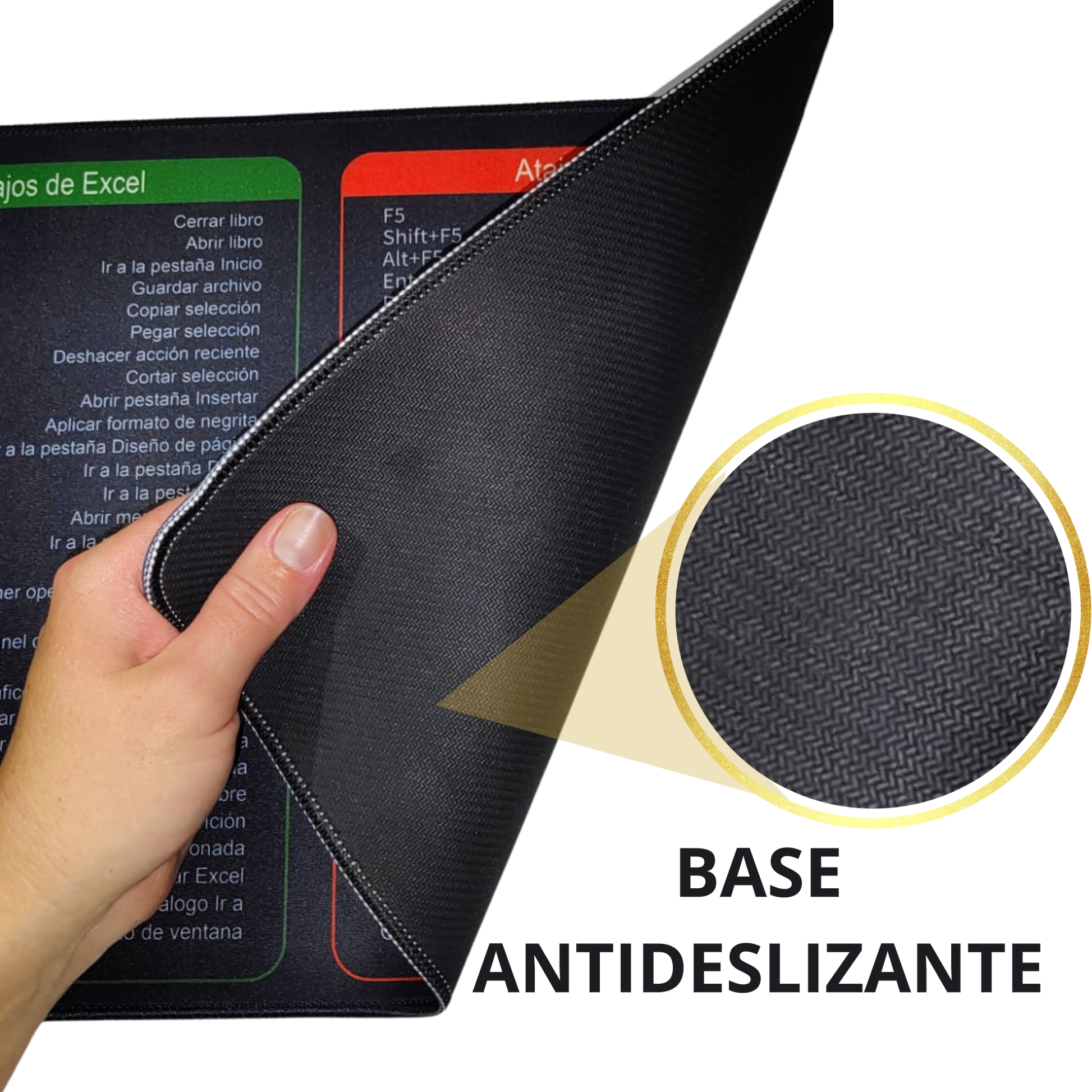 Es fabricada con una base de goma antideslizante de alta adherencia y una superficie ultrasuave que te permite deslizar el mouse sin esfuerzo y con máxima precisión, haciendo cada tarea de forma más rápida y fluida. Con atajos impresos en alta calidad resistentes al desgaste, diseñada para uso intensivo y fácil mantenimiento.